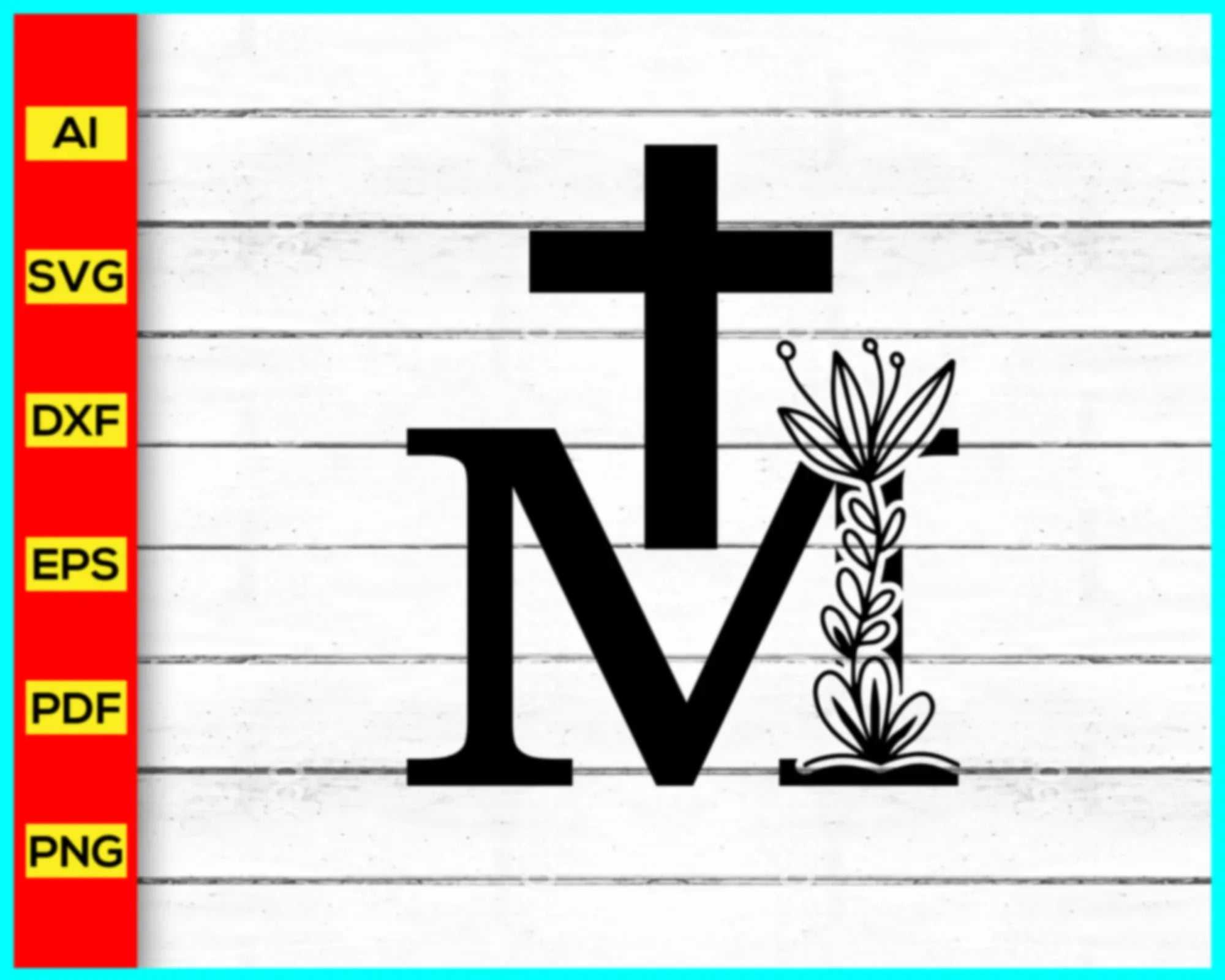 Flower Letter M. Floral Letter SVG PNG, JPEG, eps, ai, pdf and dxf, Faith Cross SVG, Religious SVG,Faith svg, Pray svg, Christian cross svg, Bible verse svg